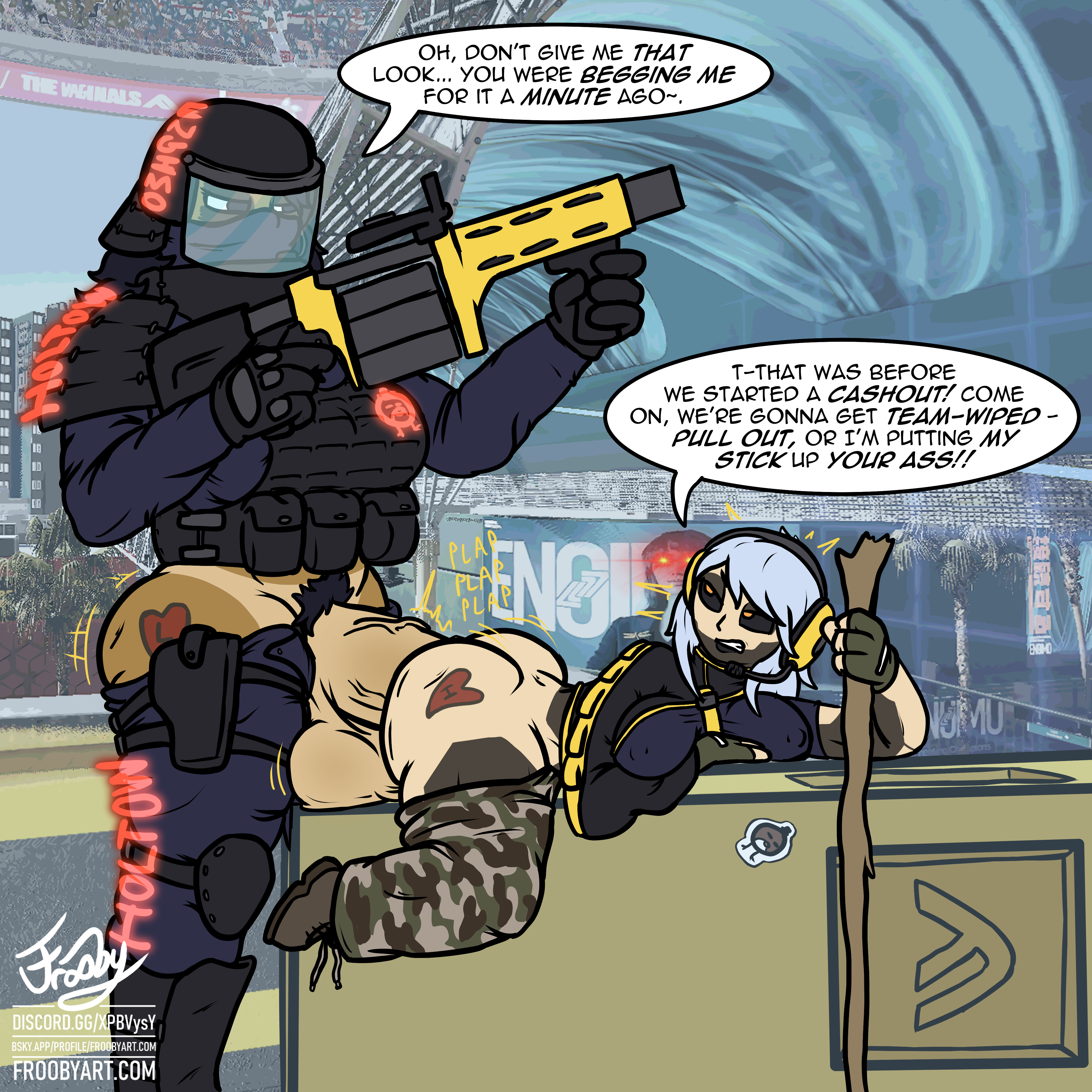 A very quick little drawing of Frooball and Shaw getting beastly with the boys! An entry for a giveaway that Mouldforged was doing on Bluesky/Shwitter, for one of their sex toys - I've heard they're brilliant, I just wish I had more disposable income to get one legitimately and financially support them. Alas, currently unemployed...